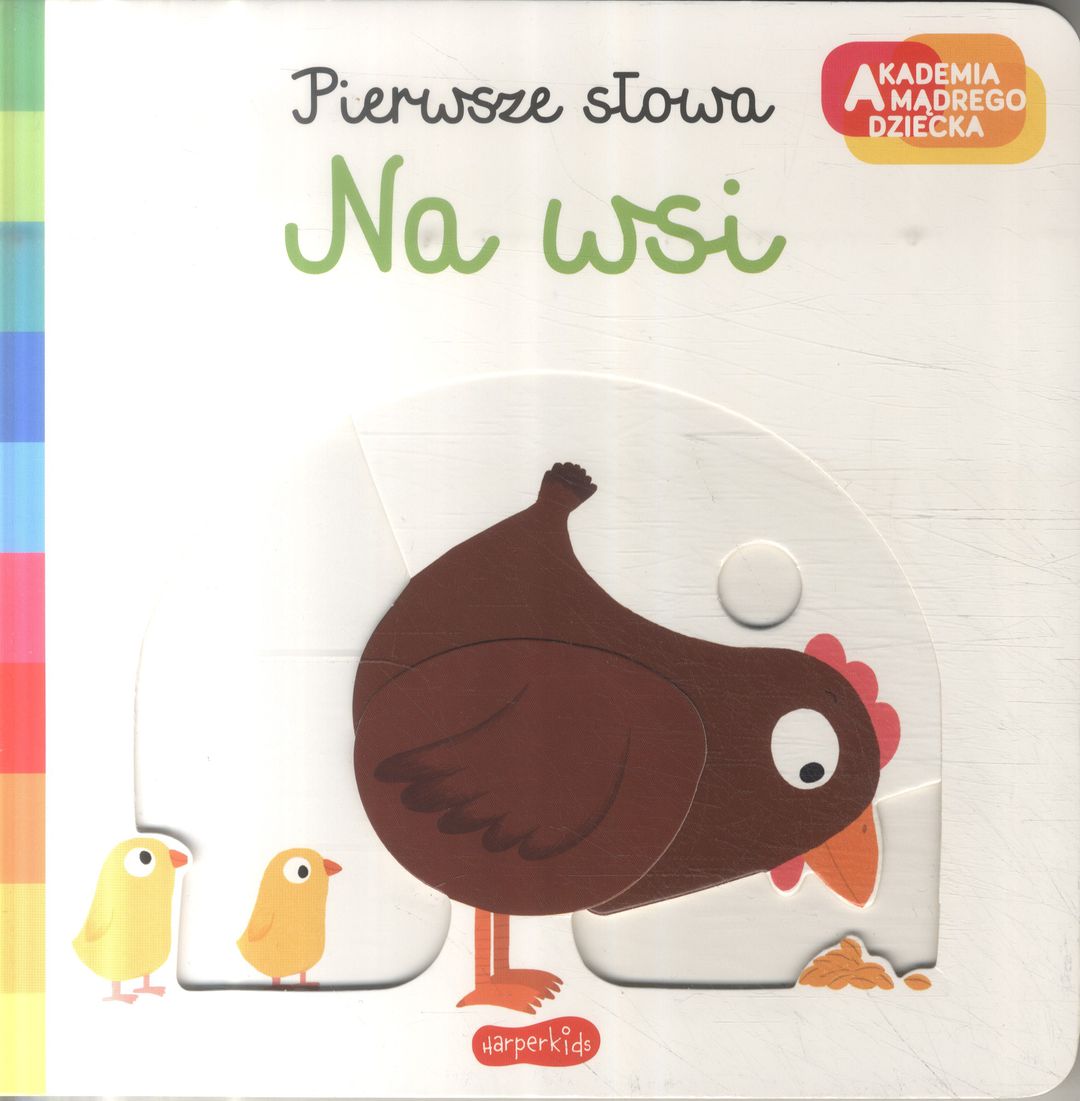 „Akademia mądrego dziecka. Pierwsze słowa” to seria książek z ruchomymi elementami przeznaczona dla najmłodszych dzieci. Grube, kartonowe strony i wysoka jakość zastosowanych do produkcji materiałów gwarantują wytrzymałość nawet przy wielokrotnym użytkowaniu. Zaokrąglone rogi są bezpieczne w rękach maluszków. Książeczki zachęcają najmłodszych czytelników do obcowania z książką i nauki poprzez zabawę. Służą dzieciom i opiekunom do wspólnego czytania, oglądania i odkrywania świata. Książki z serii „Akademia mądrego dziecka. Pierwsze słowa” autorstwa Nathalie Choux posiadają kolorowe, bogate ilustracje, które przyciągają wzrok dziecka i pomagają w zapamiętywaniu nowych słów. Ruchome elementy wzbudzają zainteresowanie, usprawniają rozwój dłoni i motoryki małej, uruchamiają wyobraźnię. Wybrane kartonowe elementy można przesunąć, popchnąć, przekręcić i w ten sposób zmienić obrazek oraz poznać odpowiedzi na zadane przez autorkę pytania. Każda z książeczek dotyczy przedmiotów, zjawisk, czynności z życia codziennego i bliskiego otoczenia dziecka. Książki uczą nowych słów, pomagają maluchowi w zrozumieniu otaczającego go świata a ruchome elementy zachęcają do interakcji. Na końcu każdej książeczki znajduje się rozkładówka podsumowująca, zachęcająca malucha do użycia wszystkich poznanych wcześniej słów.