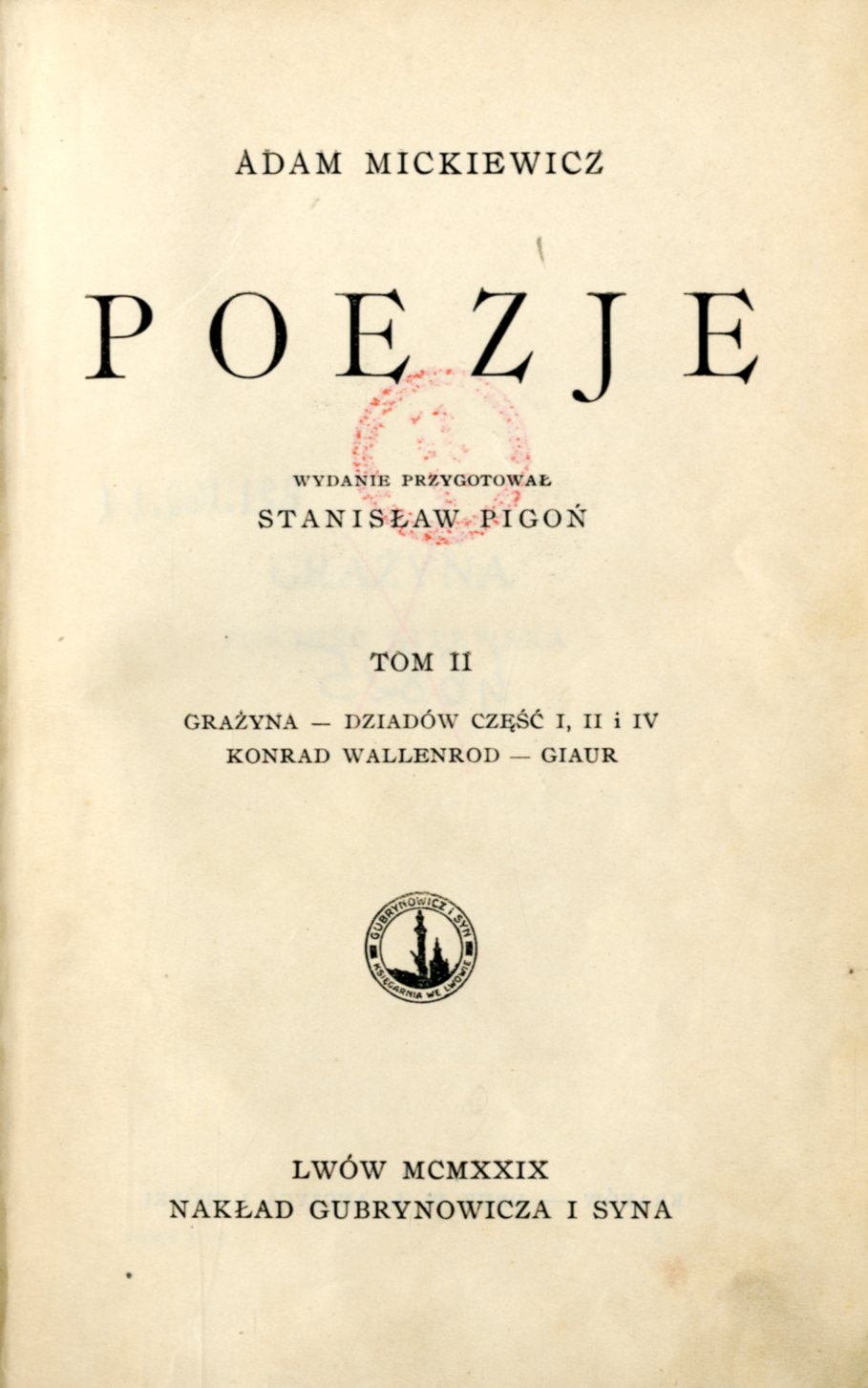 Zawiera: Pan Tadeusz czyli ostatni zjazd na Litwie : historia szlachecka z roku 1811 i 1812 we dwunastu księgach wierszem.