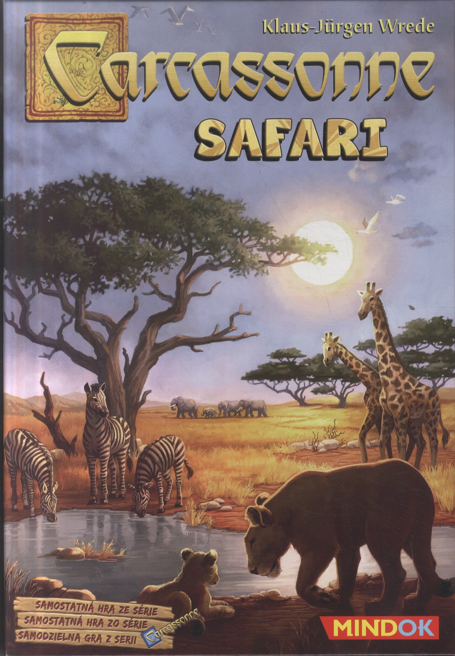 Zawartość pudełka: 72 płytki terenu, 50 żetonów zwierząt, płytka startowa, plansza punktacji, 5 liczników punktów, 30 małych drewnianych meepli, 5 drewnianych słoni, 2 drewniane patrole, instrukcja.