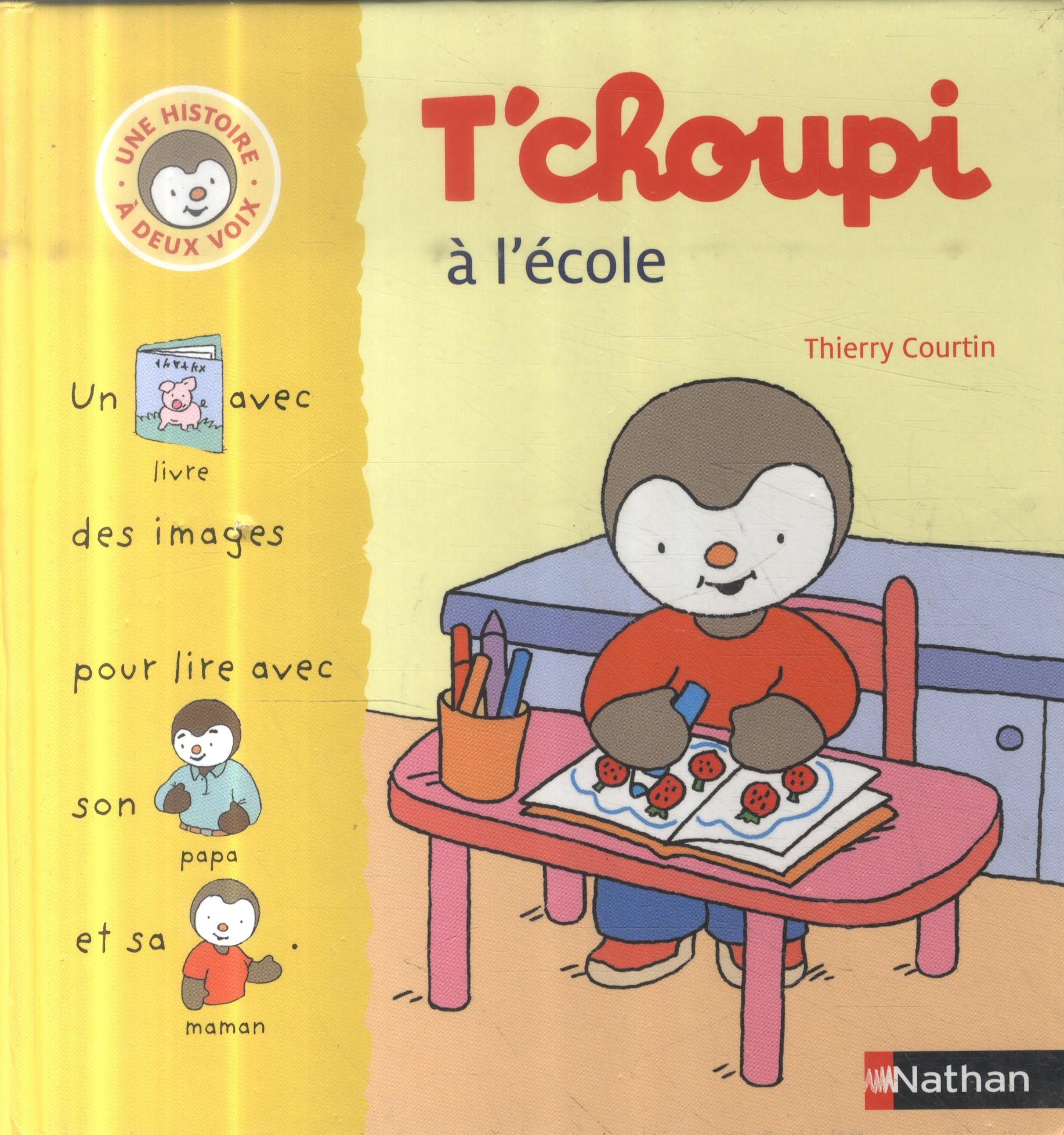 Découvre avec T'choupi le petit monde de l'école, apprends des mots nouveaux et observe les grandes illustrations.