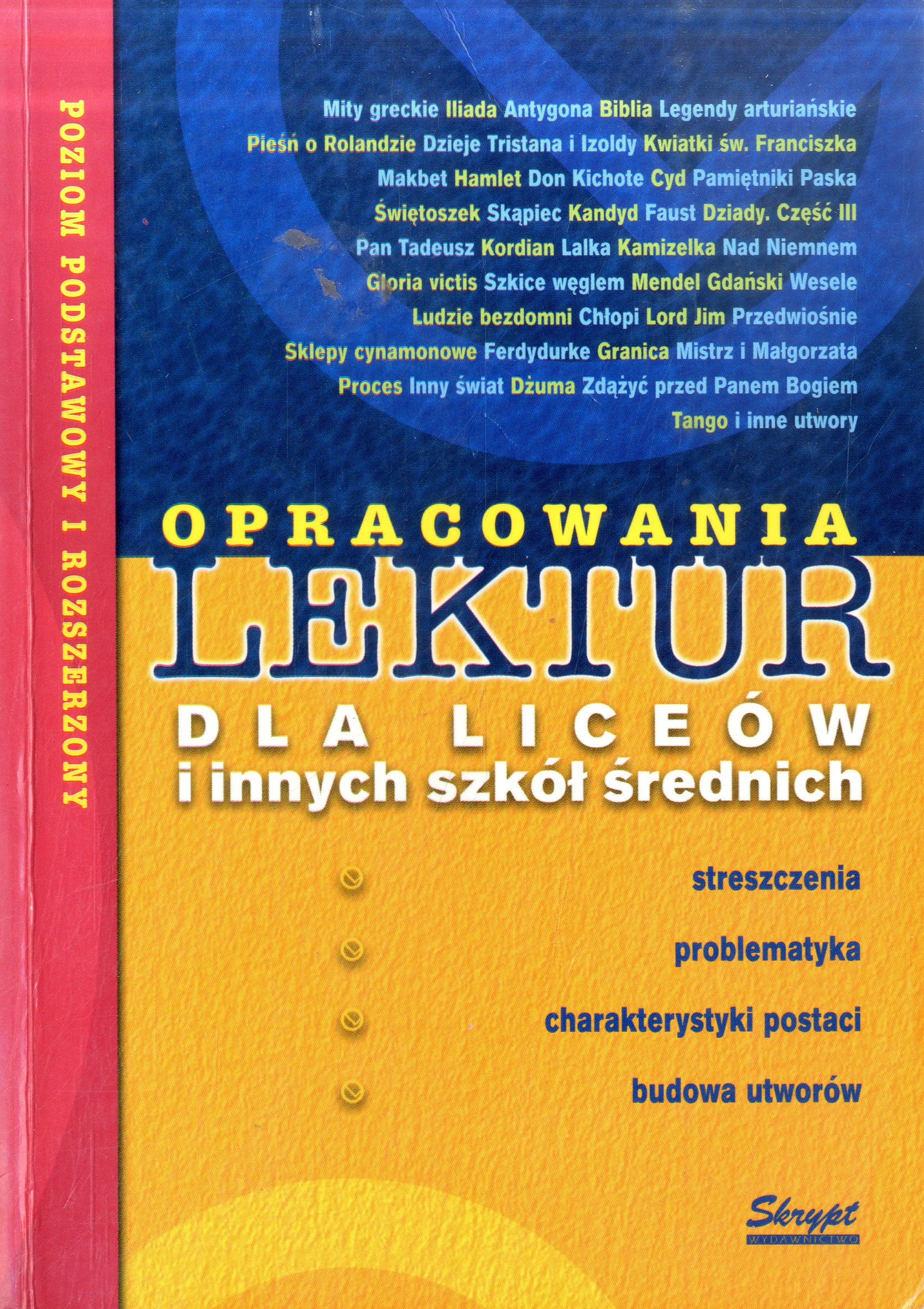 Na okł. podtyt.: streszczenia, problematyka, charakterystyki postaci, budowa utworów : poziom podstawowy i rozszerzony.