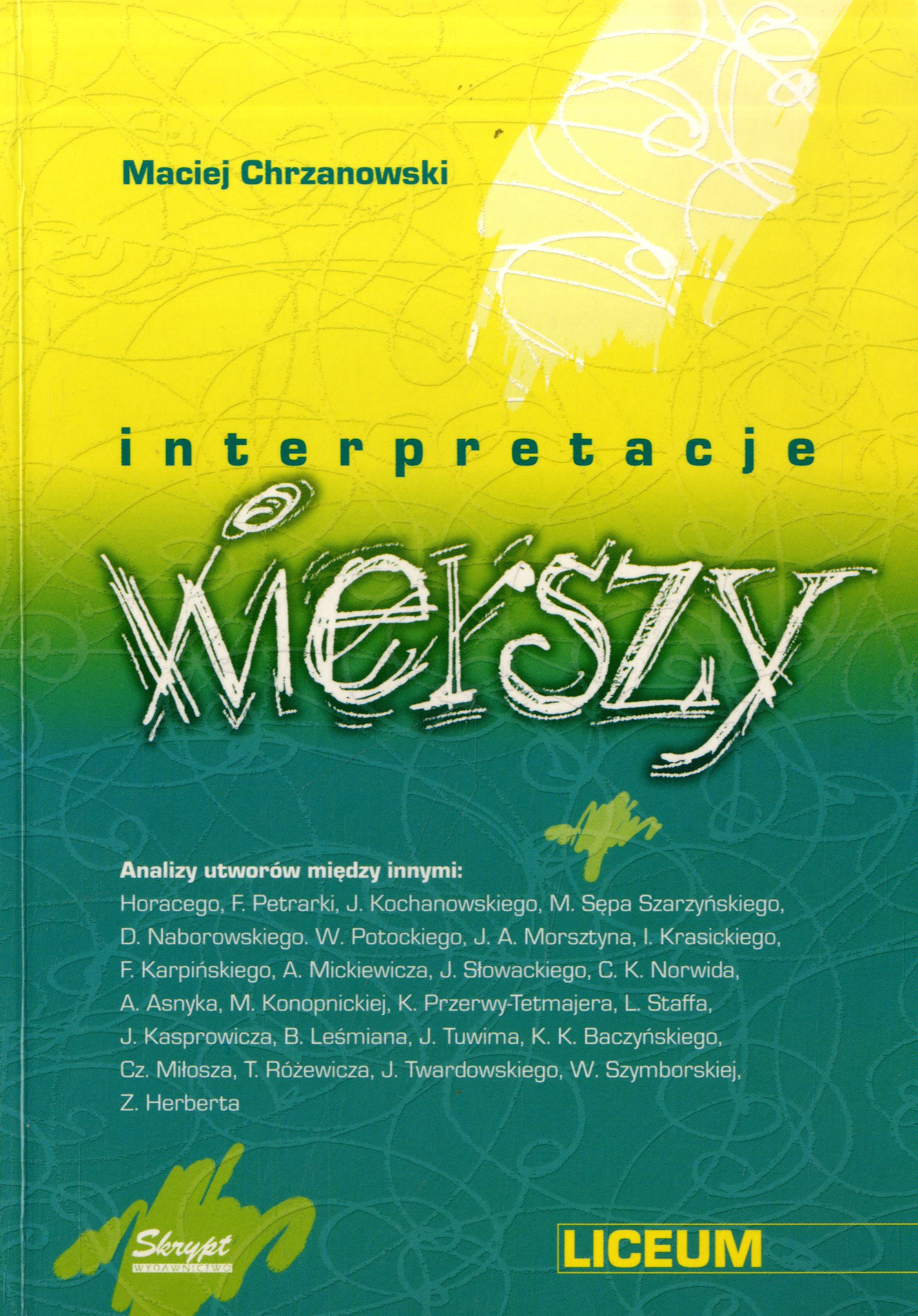 Interpretacje wierszy : liceum / Maciej Chrzanowski. - Warszawa : "Skrypt", cop. 2004. - 183, [1] s. ; 21 cm.