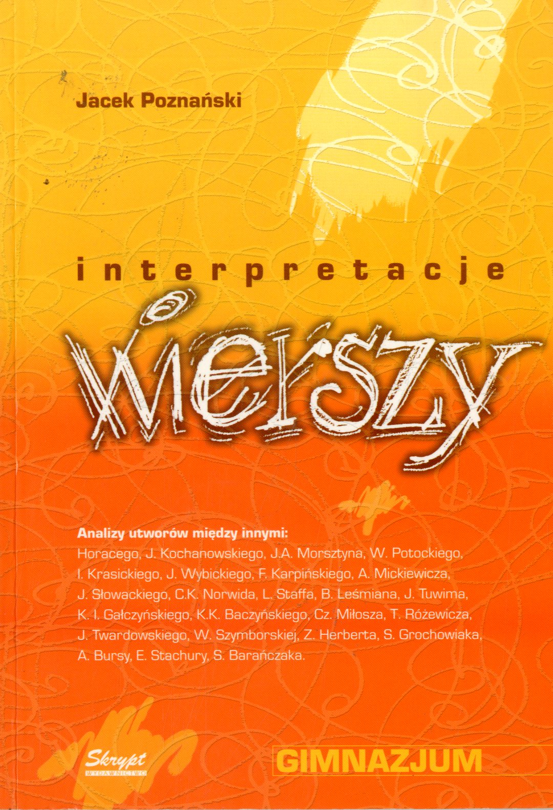 Interpretacje wierszy : gimnazjum / Jacek Poznański. - Warszawa : "Skrypt", cop. 2004. - 143, [1] s. ; 21 cm.