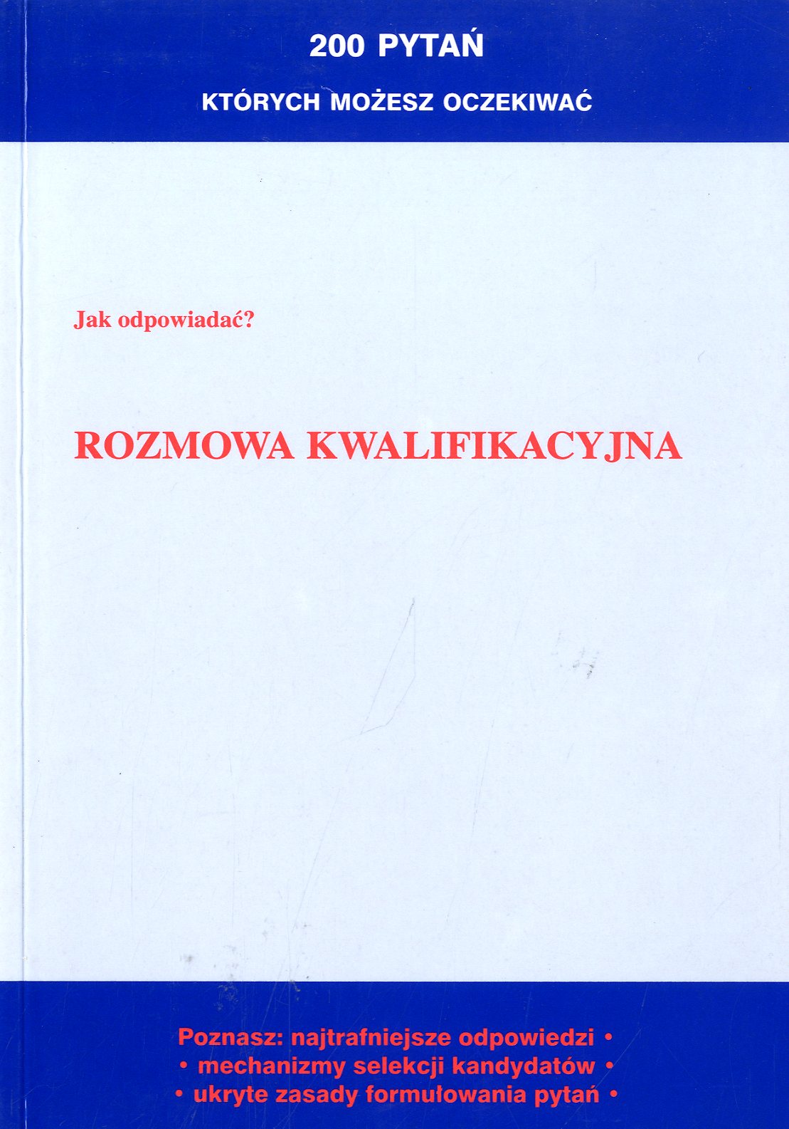 Na okł. podtyt.: 200 pytań których możesz oczekiwać : jak odpowiadać : poznasz: najtrafniejsze odpowiedzi, mechanizmy selekcji kandydatów, ukryte zasady formułowania pytań.