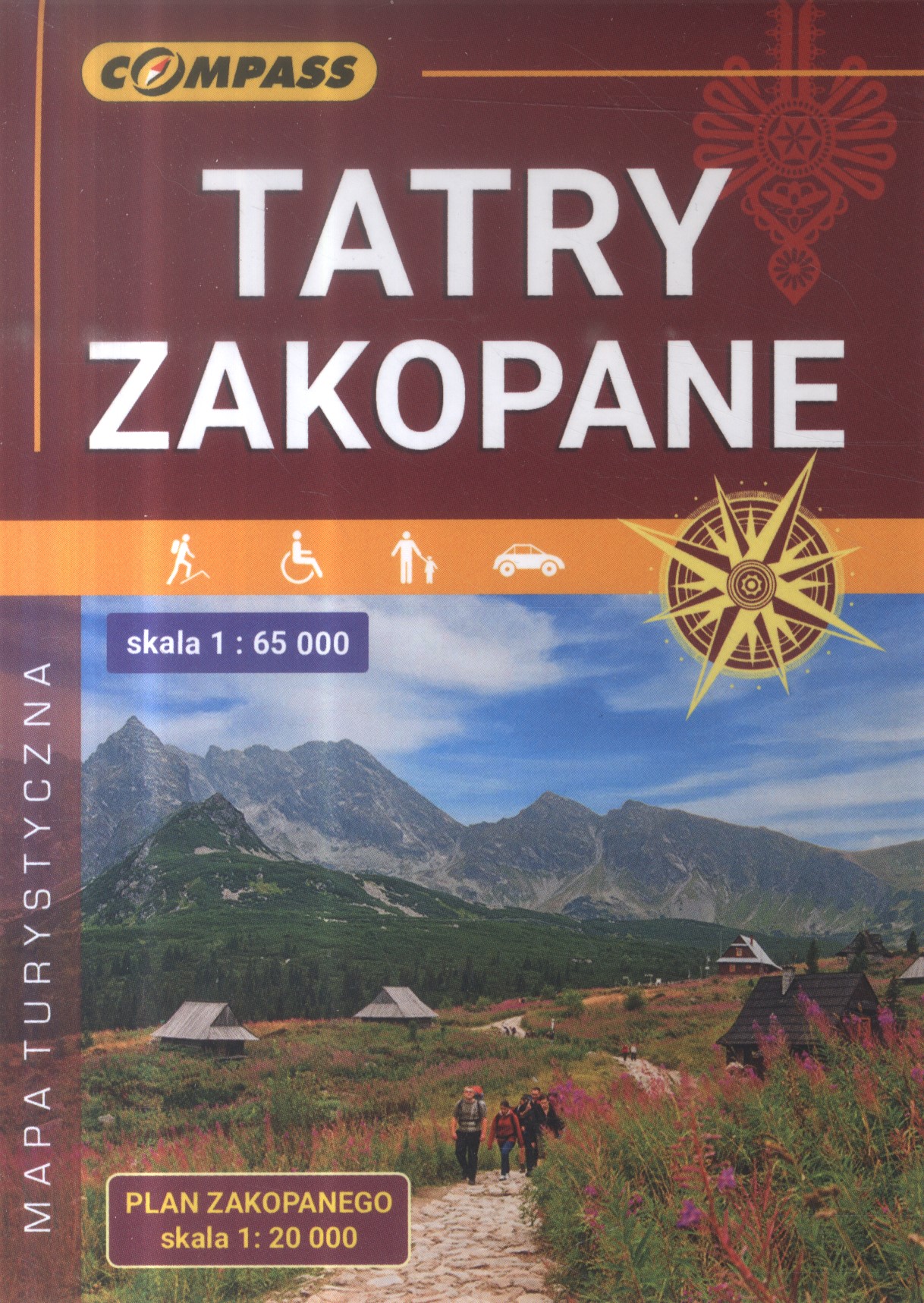 Tatry, Zakopane : mapa turystyczna : skala 1:65 000 / Wydawnictwo kartograficzne "Compass". - Wydanie IX. - Kraków : Wydawnictwo kartograficzne "Compass", 2019. - 2 mapy na 1 arkuszu : na obu stronach arkusza, wielobarwne, laminowane ; arkusz 30x42 cm, złożony 15x11 cm.