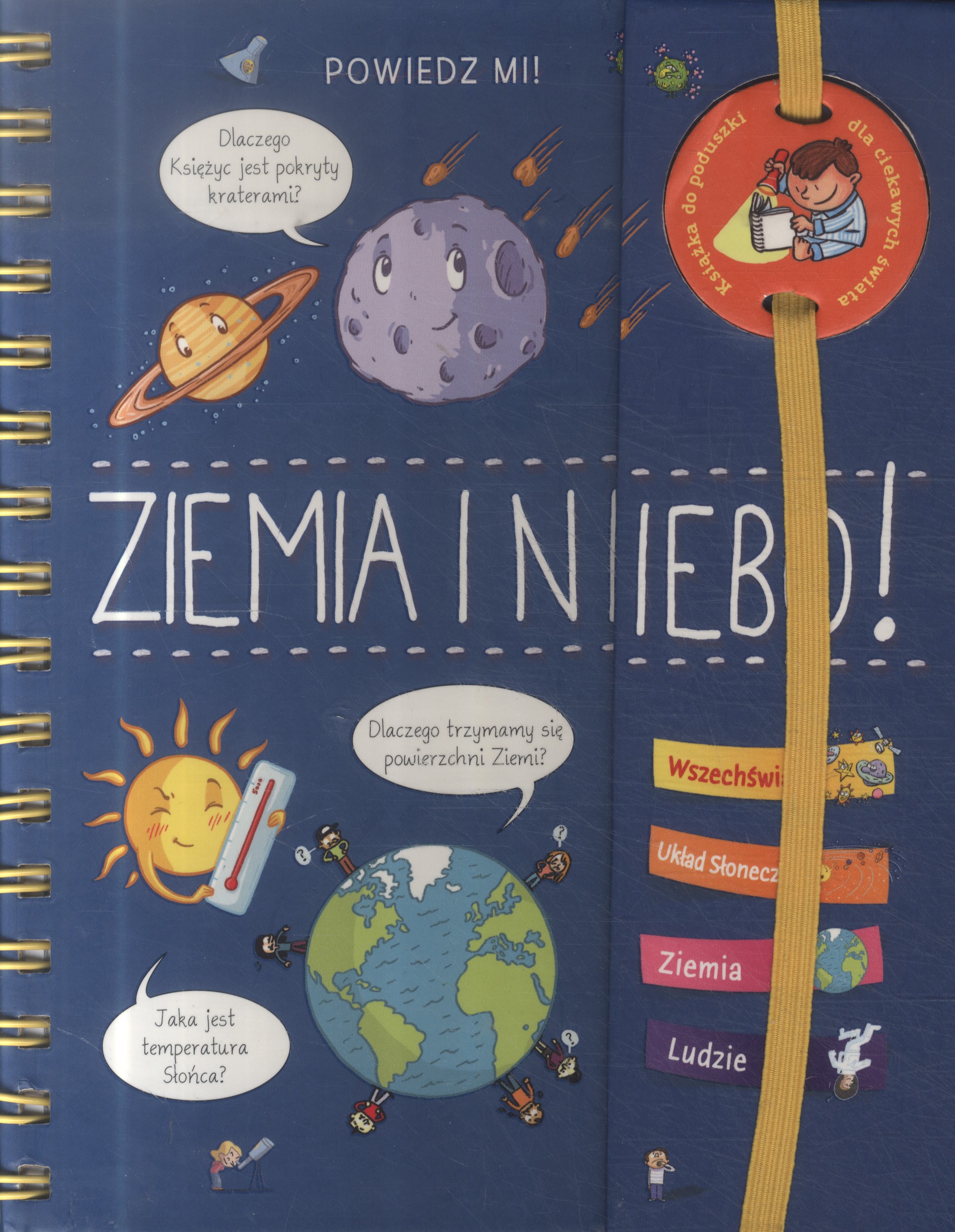 Na stronie tytułowej i na gumce na kółeczku: Książka do poduszki dla ciekawych świata.